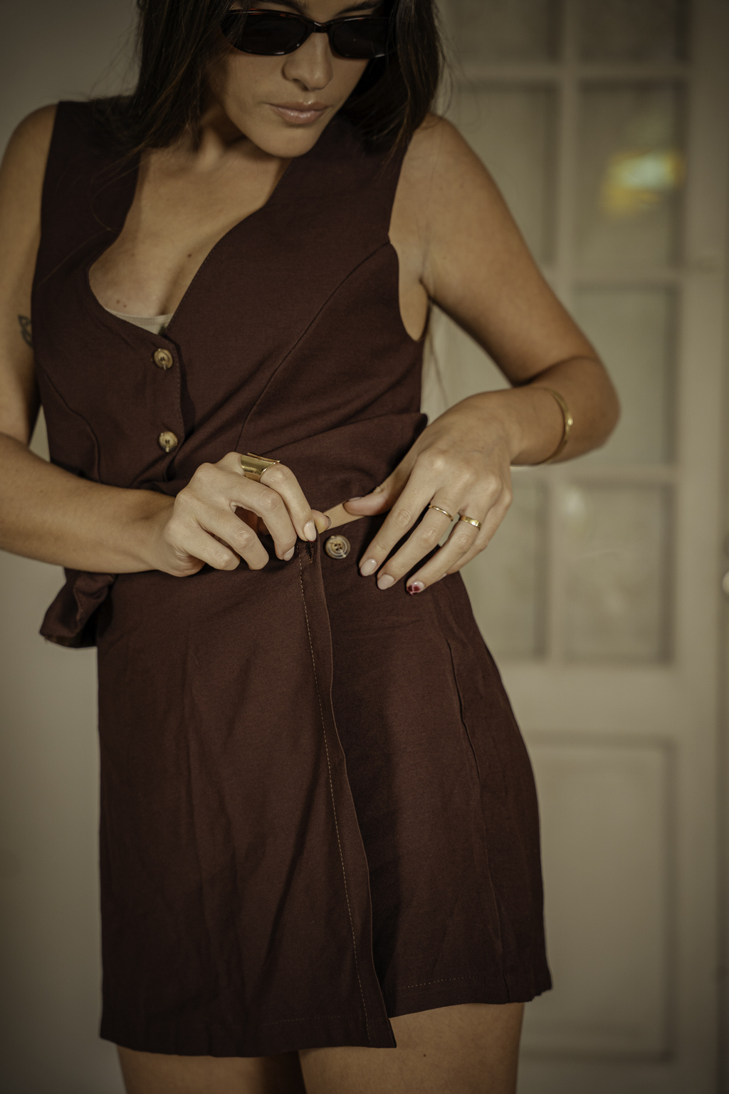 Short pollera con prendido de boton lateral. Tela: Tencel Premium. Ideal para armar set con chaleco.